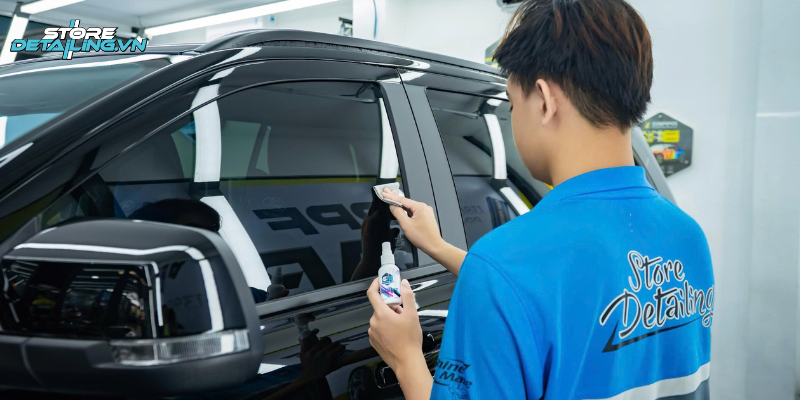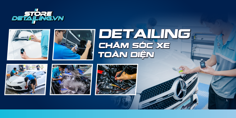 Detailing là dịch vụ chăm sóc xe chuyên sâu, gồm 05 hạng mục chính là phủ ceramic sơn, phủ ceramic kính, rửa xe detailing, vệ sinh nội thất và vệ sinh khoang máy. Mỗi công đoạn đều được thực hiện bằng sản phẩm chuyên dụng, thiết bị hiện đại và quy trình kỹ thuật tiêu chuẩn.