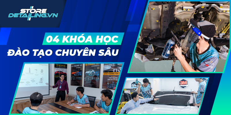 Khóa học trang bị đầy đủ các kỹ thuật chăm sóc ô tô từ cơ bản đến nâng cao, giúp học viên thực hành rửa xe chuẩn kỹ thuật, thay nhớt bảo dưỡng định kỳ, vệ sinh khoang máy, vệ sinh nội thất, đánh bóng kính, phủ ceramic bảo vệ kính và bề mặt sơn. Học viên còn được đào tạo kỹ thuật phủ gầm chống rỉ và hiệu chỉnh bề mặt sơn, đáp ứng nhu cầu detailing chuyên nghiệp tại garage của mình.