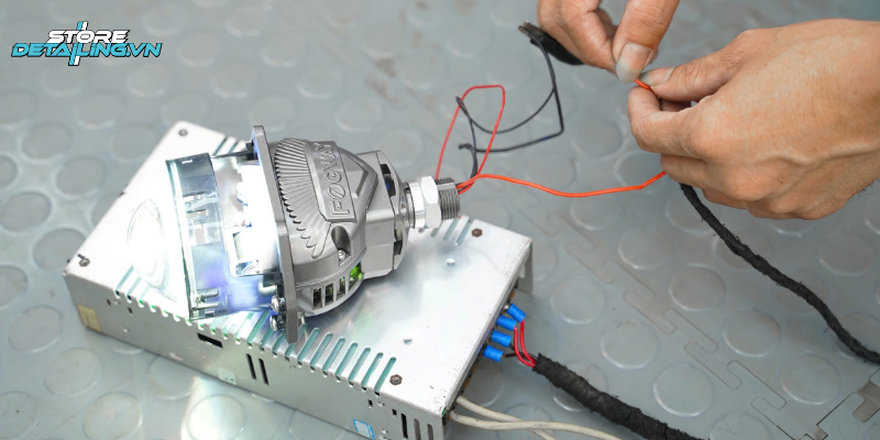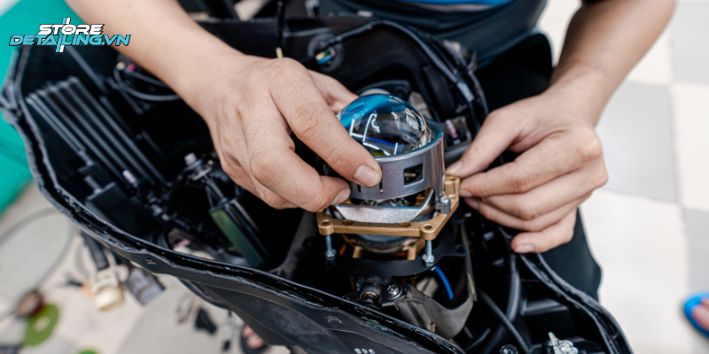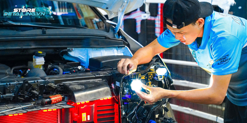 Tại STORE DETAILING, việc độ đèn được thực hiện bằng phương pháp an toàn, đảm bảo không can thiệp hay làm ảnh hưởng đến hệ thống điện zin của xe. Toàn bộ quá trình thi công được kiểm soát chặt chẽ để duy trì nguyên vẹn kết cấu và hoạt động của các bộ phận điện tử.