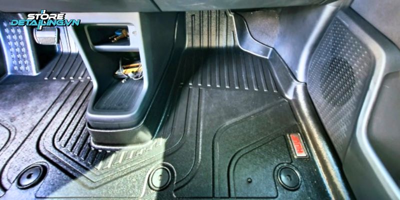 Thảm lót sàn nhựa được thiết kế với bề mặt đặc biệt giúp ngăn chặn hoàn toàn nước, bùn đất và bụi bẩn thấm vào sàn xe. Nhờ vậy, khoang nội thất luôn được giữ trong tình trạng khô ráo và sạch sẽ, bất kể điều kiện thời tiết bên ngoài. Điều này cực kỳ hữu ích với khí hậu nhiệt đới ẩm gió mùa của Việt Nam, đặc biệt vào mùa mưa.