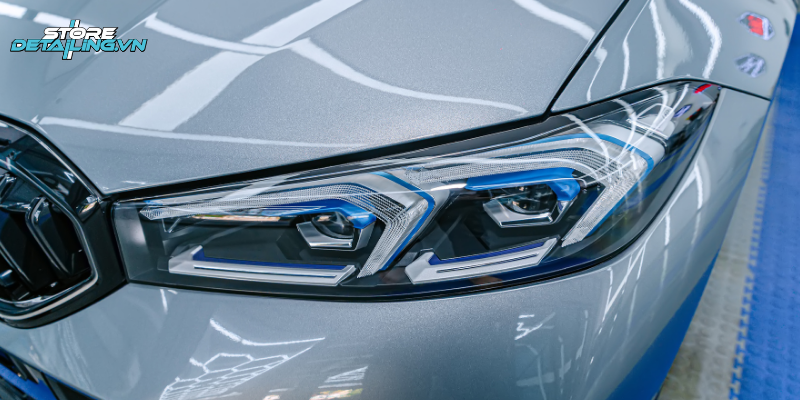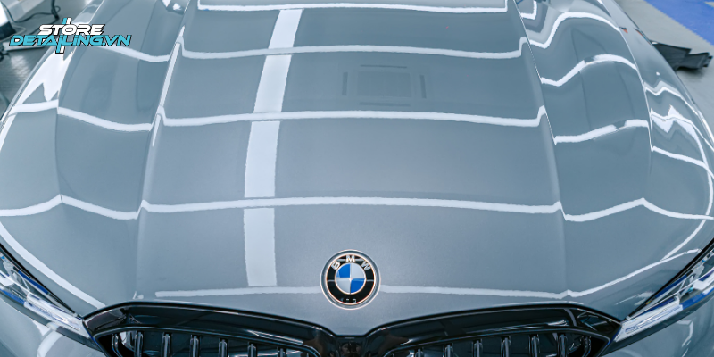 BMW 330i sở hữu lớp sơn xám ánh kim hiện đại, mang phong cách thể thao năng động. Tuy nhiên, dưới ánh đèn hoặc ánh nắng trực tiếp, những vết xước nhẹ, quầng xoáy hay bụi mịn rất dễ bị phản chiếu và lộ rõ trên bề mặt sơn. Nếu không được xử lý đúng cách, lớp sơn có thể nhanh chóng xuất hiện các vết xước nhỏ li ti trên nước sơn bóng.