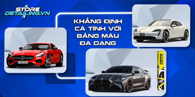 Mọi dự án dán decal đổi màu đều được STORE DETAILING thực hiện bằng các sản phẩm nhập khẩu chính hãng. Được sản xuất với công nghệ hiện đại, đảm bảo độ bóng vượt trội và độ bền về màu sắc nét theo thời gian. Việc sử dụng sản phẩm chính hãng không chỉ mang lại thẩm mỹ hoàn hảo như hình ảnh thực tế mà còn đảm bảo an toàn tuyệt đối, không để lại vết keo hay tổn hại cho bề mặt sơn zin của xe.