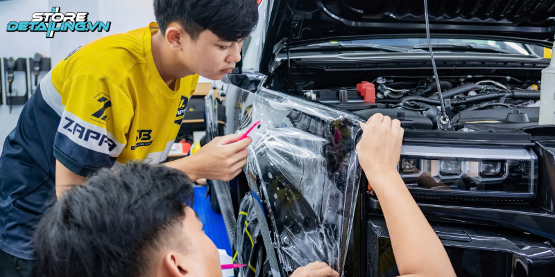 STOREDETAILING sở hữu đội ngũ kỹ thuật viên chuyên nghiệp, có nhiều năm kinh nghiệm trong lĩnh vực dán phim bảo vệ sơn xe. Kỹ thuật viên được đào tạo bài bản, có khả năng xử lý các tình huống kỹ thuật khó, đảm bảo thi công chính xác và an toàn cho từng chiếc xe, trong đó có Cruiser Prado.