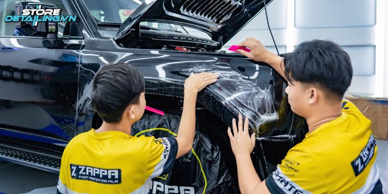 Quá trình dán PPF Zappa 1398 tại STOREDETAILING được thực hiện một cách chuẩn chỉnh, từng bước được kiểm tra nghiêm ngặt để đảm bảo phim dán bám sát bề mặt, không có bọt khí, không bị nhăn hay lệch. Sự tỉ mỉ trong từng công đoạn giúp tăng tính thẩm mỹ và hiệu quả bảo vệ tối ưu.