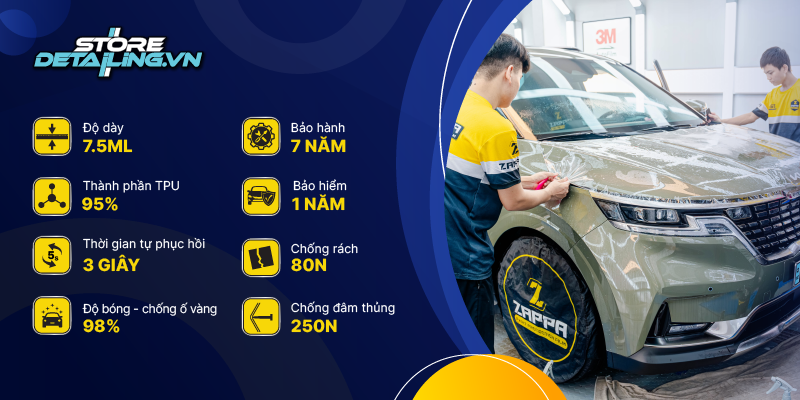 Khách hàng khi lựa chọn dán PPF Zappa 1398 tại STOREDETAILING sẽ được hưởng chính sách bảo hành chính hãng lên đến 5 năm tại website chính hãng tử Zappa Việt Nam. Bên cạnh đó, trung tâm còn cung cấp thêm 1 năm bảo hiểm bảo vệ cho phim, giúp khách hàng an tâm tuyệt đối trong quá trình sử dụng.