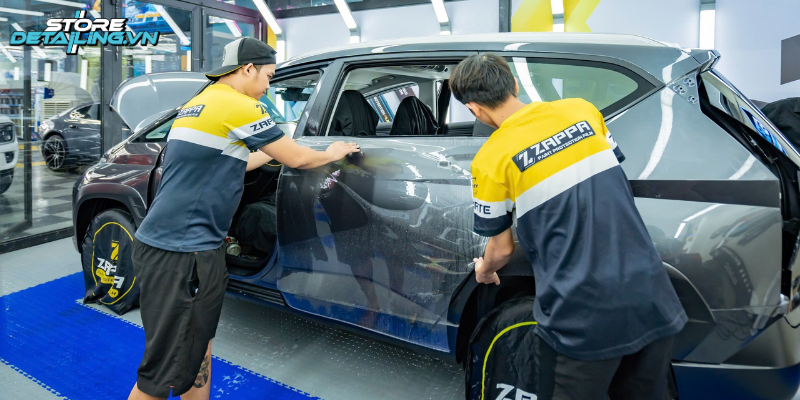 Tại STOREDETAILING, đội ngũ kỹ thuật viên không chỉ được đào tạo bài bản mà còn sở hữu kinh nghiệm chuyên sâu trong việc dán PPF, đặc biệt là các dòng xe Hyundai như Hyundai Stargazer. Sự am hiểu kỹ thuật, cấu tạo và thiết kế của từng mẫu xe giúp kỹ thuật viên thực hiện quy trình dán phim một cách chính xác, đảm bảo phim phủ đều, ôm sát các chi tiết xe.
