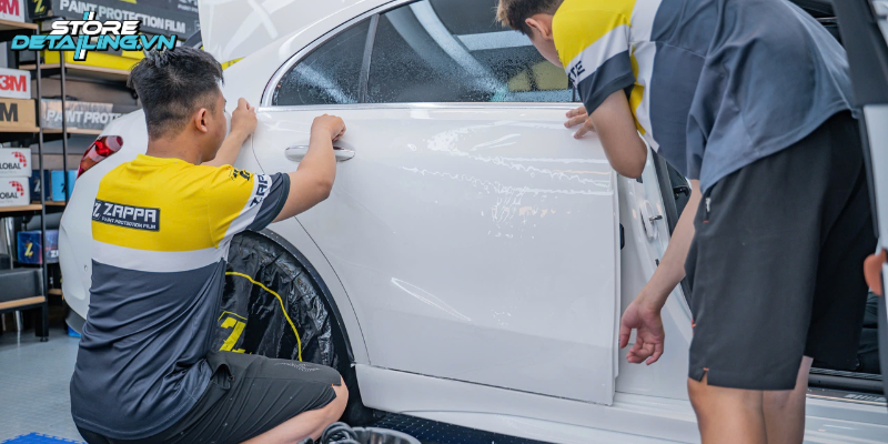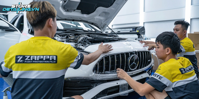 Tại STOREDETAILING, mỗi kỹ thuật viên đều trải qua quy trình đào tạo bài bản và được kiểm tra tay nghề định kỳ. Với kinh nghiệm thực chiến trên hàng trăm dòng xe sang, đặc biệt là Mercedes, đội ngũ tại đây không chỉ hiểu rõ từng đường nét thiết kế mà còn có kỹ năng xử lý linh hoạt từng chi tiết khó như nẹp cửa, tay nắm, cản sau, gương chiếu hậu,...