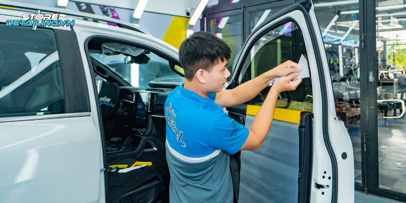 Tại STORE DETAILING quy trình thi công dán phim cách nhiệt 3M được tiến hành theo các bước như sau: