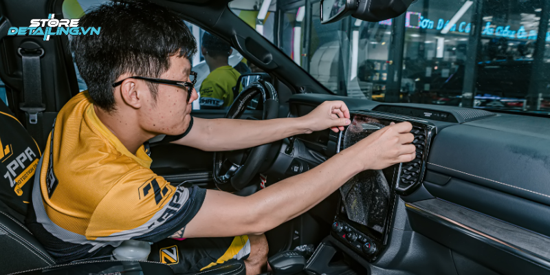 Dán PPF 3M cho bề mặt màn hình cảm ứng: Lớp PPF trong suốt giúp hạn chế trầy xước khi thao tác, không ảnh hưởng khả năng hiển thị và giữ bề mặt màn hình sạch sẽ, dễ vệ sinh trong quá trình sử dụng.