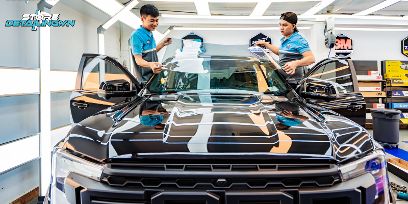 Đội ngũ kỹ thuật viên tại STORE DETAILING có kinh nghiệm thi công cho các dòng bán tải cỡ lớn như Ford Ranger Raptor. Quy trình được thực hiện chuẩn xác trên từng bề mặt kính, đảm bảo lớp phim ôm khít, không bọt khí, không bong mép và phát huy tối đa hiệu quả cách nhiệt, độ bền và tính thẩm mỹ.