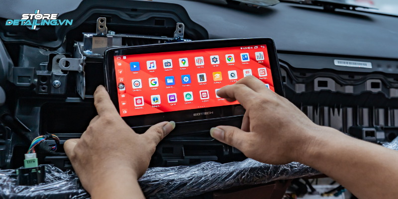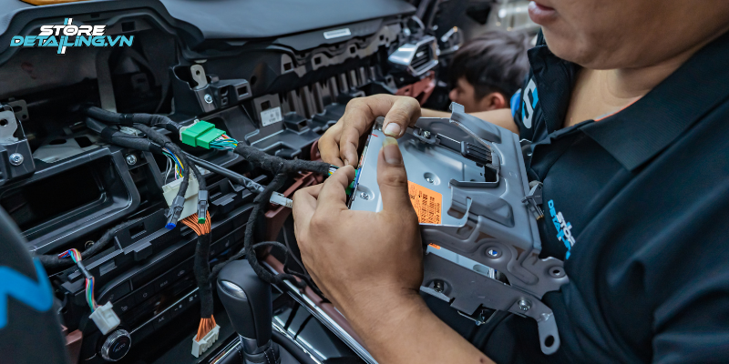 Quy trình lắp đặt tại STORE DETAILING được thực hiện bởi đội ngũ kỹ thuật viên dày dạn kinh nghiệm, am hiểu cấu trúc điện và nội thất của nhiều dòng xe. Nhờ thao tác chuyên nghiệp, tỉ mỉ trong từng chi tiết, màn hình được lắp đặt gọn gàng, chuẩn kỹ thuật và tương thích tuyệt đối với hệ thống của xe.