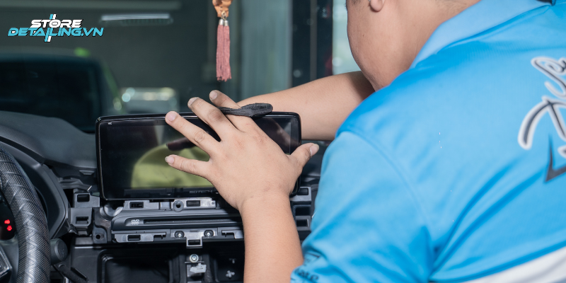 Quy trình lắp đặt tại STORE DETAILING được thực hiện bởi đội ngũ kỹ thuật viên dày dạn kinh nghiệm, am hiểu cấu trúc điện và nội thất của nhiều dòng xe. Nhờ thao tác chuyên nghiệp, tỉ mỉ trong từng chi tiết, màn hình được lắp đặt gọn gàng, chuẩn kỹ thuật và tương thích tuyệt đối với hệ thống của xe.