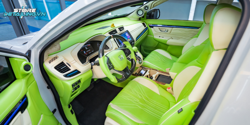 Sau khi hoàn thiện, nội thất chiếc Honda CR-V khoác lên diện mạo hoàn toàn mới với tone xanh lá phối kem thanh lịch. Sự tương phản nhẹ giữa hai gam màu tạo cảm giác hiện đại nhưng vẫn tinh tế, khiến khoang xe trở nên sáng và rộng hơn, đồng thời mang lại giá trị thẩm mỹ cao cấp hiếm thấy.