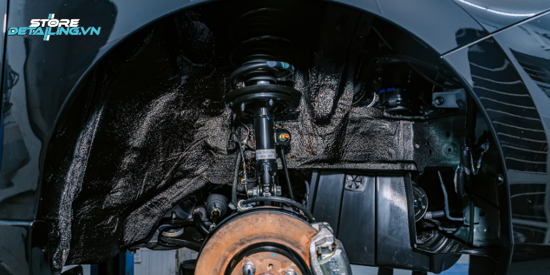 STORE DETAILING sử dụng dung dịch phủ gầm gốc dầu GB chính hãng, nhập khẩu và đạt tiêu chuẩn kỹ thuật dành cho ô tô. Sản phẩm có hàm lượng nhựa đường cao, giúp tạo lớp phủ dày, bám chắc và ổn định trên bề mặt kim loại. Nhờ đó, lớp phủ đạt độ che phủ đồng đều và duy trì trạng thái bền vững trong suốt quá trình sử dụng xe.