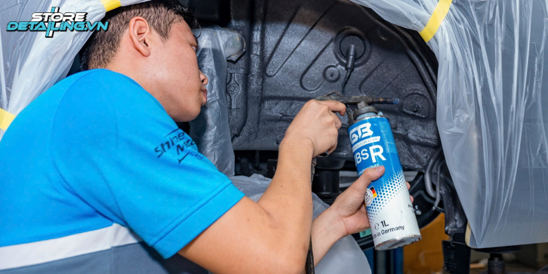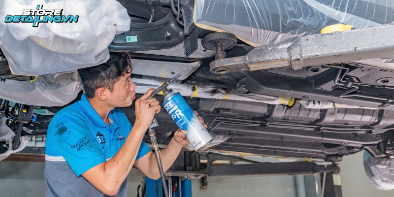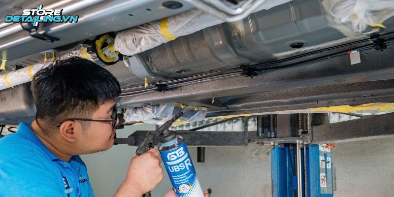 Mỗi kỹ thuật viên tại STOREDETAILING đều được đào tạo chuyên sâu, nắm vững kiến thức về kết cấu ô tô cũng như quy trình phủ gầm đúng chuẩn. Quy trình thi công được kiểm soát nghiêm ngặt theo từng bước. Từ khâu làm sạch, che chắn chi tiết nhạy cảm, xử lý bề mặt, phun sơn đến khâu kiểm tra chất lượng cuối cùng.