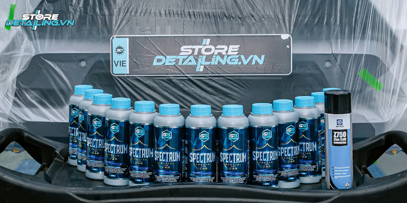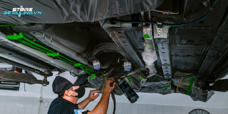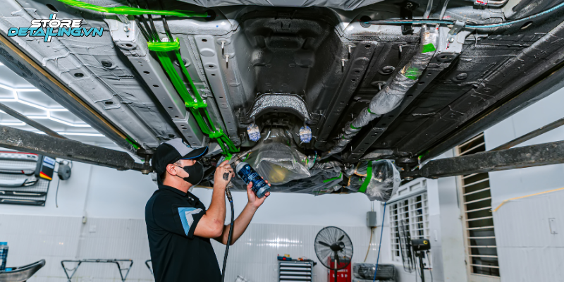 STORE DETAILING sử dụng dung dịch phủ gầm quang phổ chính hãng, đạt tiêu chuẩn an toàn và thân thiện với môi trường. Lớp phủ có độ bền cao, khả năng bám dính vượt trội và được bảo hành trọn đời, giúp khách hàng yên tâm sử dụng lâu dài mà không cần tái phủ thường xuyên như các sản phẩm thông thường.