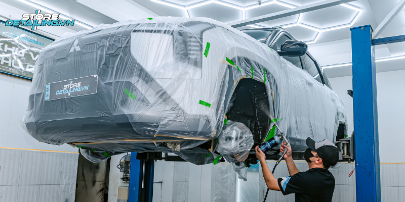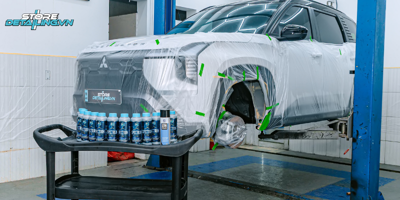 Phủ gầm quang phổ cho Mitsubishi Destinator đòi hỏi thao tác chính xác và kỹ thuật thi công cao. Tại STORE DETAILING, quy trình được chuẩn hóa để đảm bảo hiệu quả bảo vệ và độ hoàn thiện tuyệt đối cho dòng xe hạng sang.
