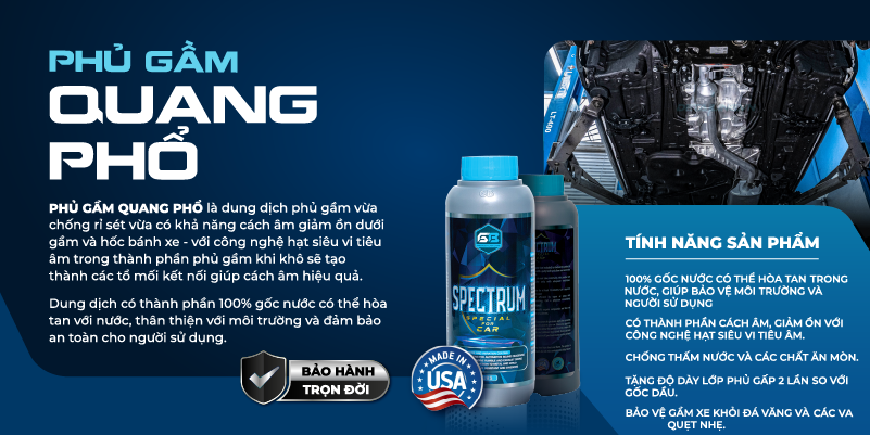 STORE DETAILING sử dụng sản phẩm chính hãng không chứa hóa chất độc hại, an toàn cho xe và môi trường. Công nghệ phun phủ hiện đại giúp lớp phủ đều màu, bám dính tốt, tăng hiệu quả bảo vệ khung gầm xe trong mọi điều kiện vận hành.