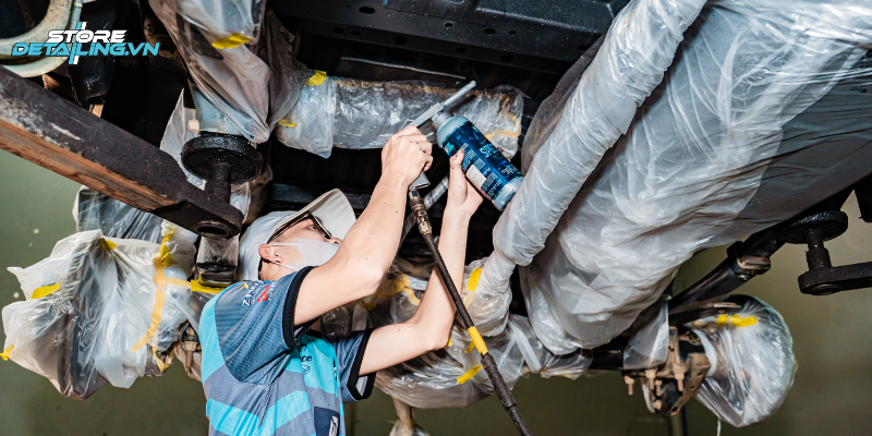 Tại STORE DETAILING, các bước thi công phủ gầm được thực hiện theo quy trình chuyên nghiệp như sau: