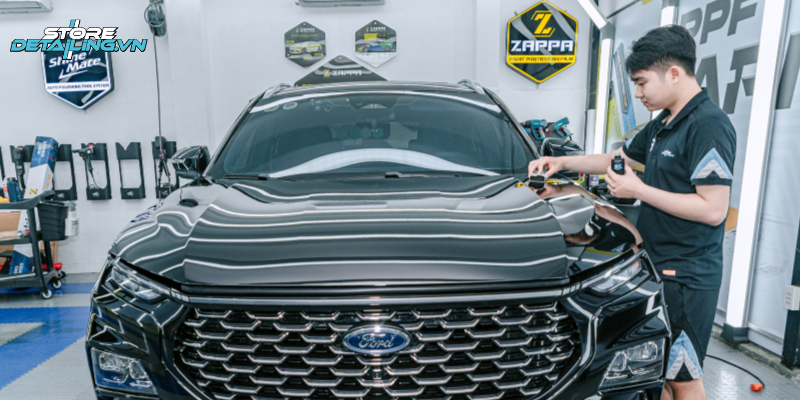Ford Territory 2025 sở hữu ngoại hình mạnh mẽ và hiện đại, nhưng lớp sơn nguyên bản lại dễ xuất hiện vết xước mảnh, bám bụi hoặc nhanh xỉn màu khi thường xuyên tiếp xúc nắng gắt. Để giữ cho màu sơn luôn bóng sâu và bền bỉ, phủ Ceramic 9H+ tại STORE DETAILING là lựa chọn tối ưu.