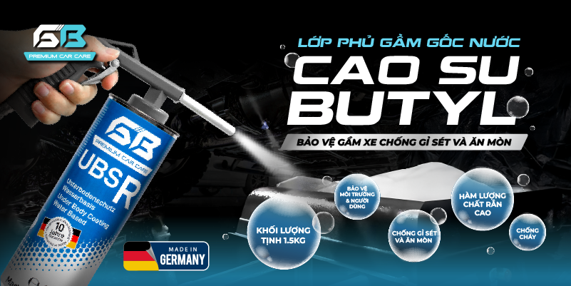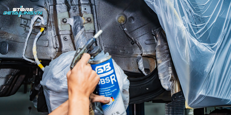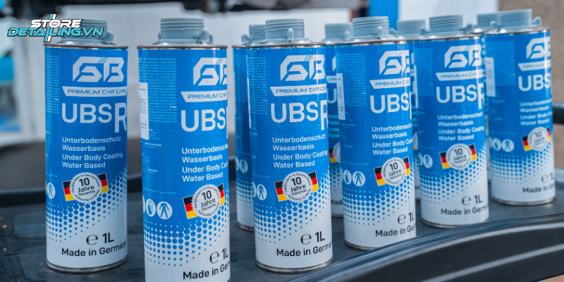 Trong dịch vụ phủ gầm gốc nước, STORE DETAILING sử dụng sản phẩm chính hãng GB nhập khẩu từ Đức, có độ bám dính cao, độ đàn hồi tốt và hoàn toàn không chứa dung môi độc hại. Đây là dòng sản phẩm đặc biệt tương thích với điều kiện khí hậu nóng ẩm, mưa nhiều và nhiều bụi bẩn tại Việt Nam.