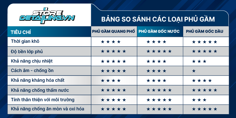 Dịch vụ phủ gầm gốc nước tại STORE DETAILING được chia thành hai gói lựa chọn, phù hợp với từng dòng xe và mục đích sử dụng:
