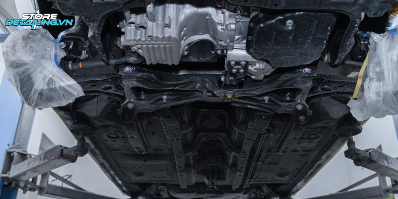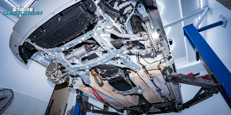 Dịch vụ phủ gầm gốc nước tại STORE DETAILING được thực hiện theo quy trình 6 bước chuẩn kỹ thuật, đảm bảo lớp phủ bám chắc, khô nhanh và phát huy tối đa hiệu quả chống gỉ, giảm ồn.